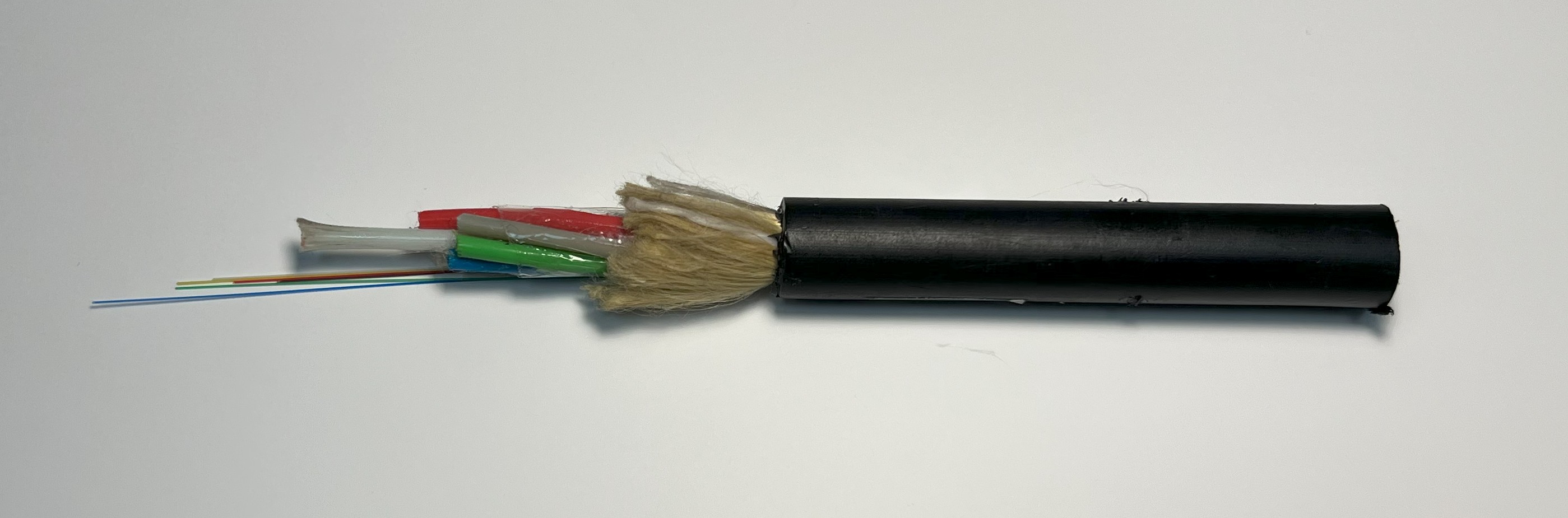 فیبرها داخل تیوبهای آزاد (Loose Tube) قرار دارند و برای تحمل نیروی کشش از الیاف آرامید (Aramid Yarn / Kevlar) بهعنوان عضو تقویتی استفاده میشود، نه فلز.