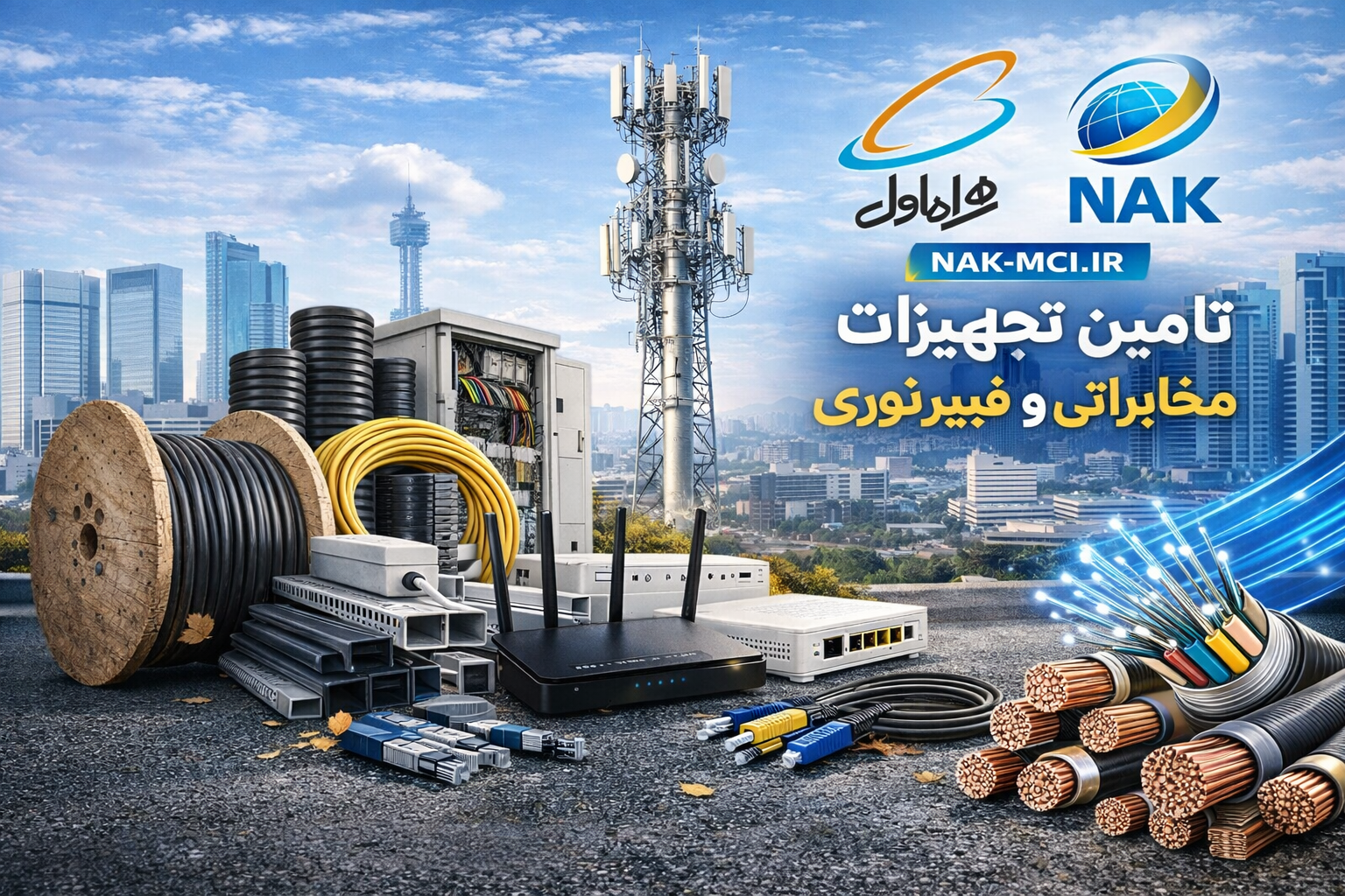 این مجموعه با افتخار اعلام میکند که تأمین متریال و تجهیزات تخصصی مورد نیاز پروژههای همراه اول و شرکت نقش اول کیفیت (ناک) را با موفقیت انجام داده است. در این پروژه، ما مسئولیت تأمین کابل فیبر نوری، انواع کابل برق، ابزار جوش و اتصال فیبر نوری، مودمها، سیم و کابلهای نوری و سایر تجهیزات مرتبط با شبکه را بر عهده داشتیم.